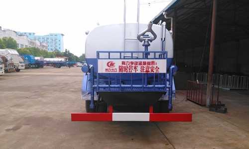 上裝配置:罐體采用4MM厚武鋼專用容積板制作,容積12立方,灑水車前沖(噴)后灑,帶側噴,罐體后帶工作平臺,平臺上安裝綠化灑水炮,灑水炮可全方位旋轉,可連續調成直沖狀、大雨、小雨、毛毛雨,帶安全護欄,配備全國質量評比第一名的大功率專用灑水泵,泵可自吸自排,安裝過濾網,帶消防接口,可通過消防栓進水,帶自流閥,隨車選裝20米綠化卷盤,可噴灑農藥。